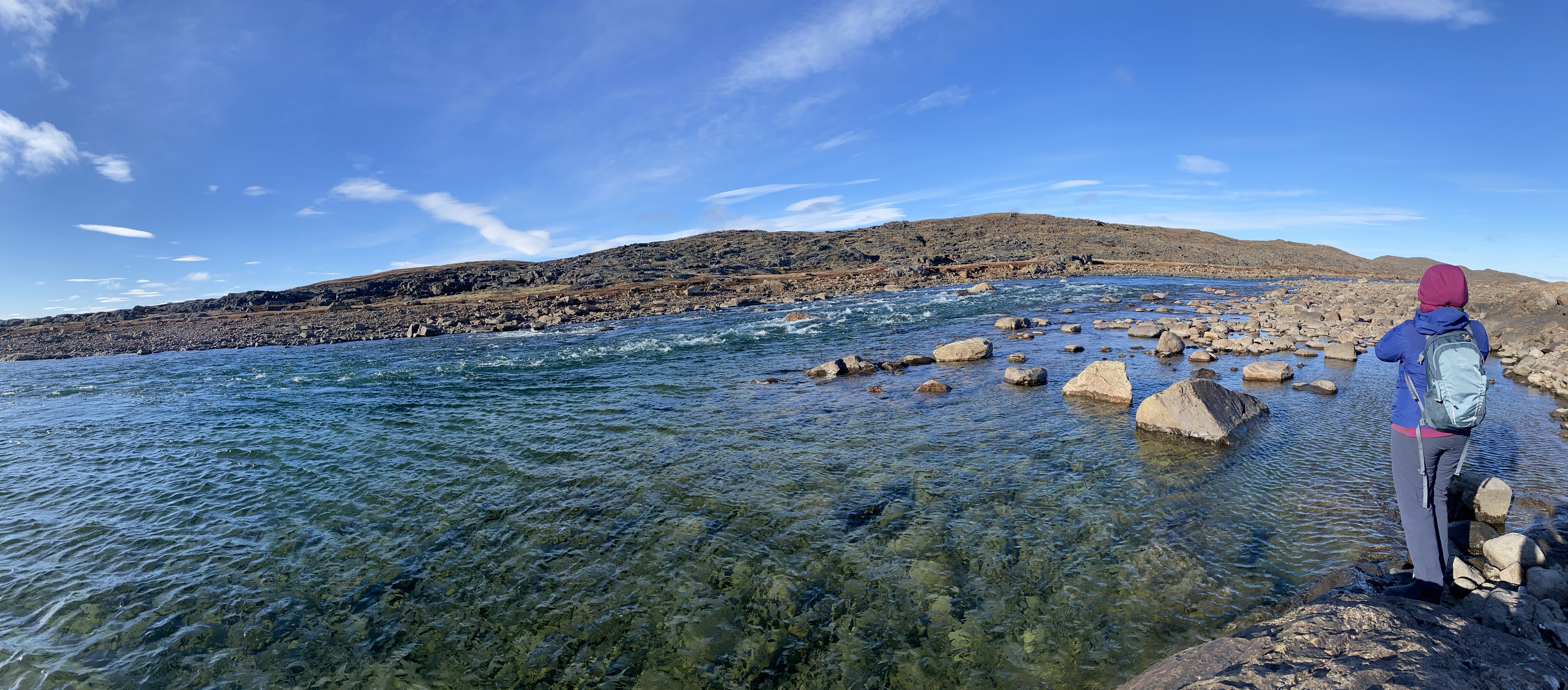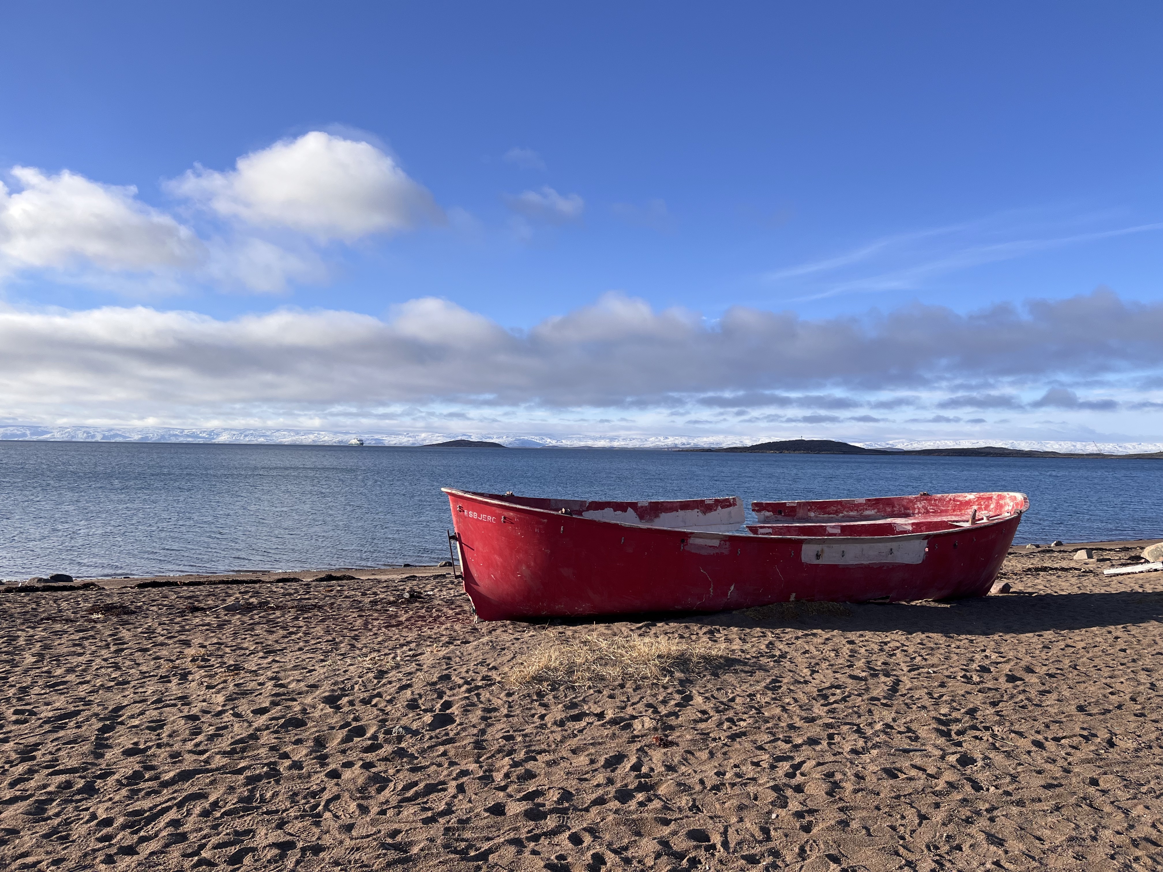 We spent the first two days over the weekend experiencing the city of Iqaluit. For Alexis, this was her first time in Nunavut, and we all wanted to gain more context and appreciation of the city and surrounding areas. Our activities included a trip to the historic Hudson’s Bay Company buildings built in 1940 and the beach in Apex (a small community about 5km from the core of the city). We hiked in Iqaluit Kuunga (Sylvia Grinnell Territorial Park) to experience the breathtaking tundra landscape along the Sylvia Grinnell River. We also visited the Nunatta Sunakkutaangit Museum and Unikkaarvik Visitor Centre where we were warmly welcomed by staff. During these two days we enjoyed our time together, and we grew stronger as a team. Despite collaborating closely for the past two years, Alexis and Alison had never met in person before, and it was a real bonus to have this time together. We also took time to prepare and refine our plans to make the most of the week ahead of us. We had a long list of people and organizations to connect with, so we divided tasks and priorities amongst the three of us. During the week we also visited a team of sled dogs, experienced the locally popular wing night with friends, sampled char and caribou, and were very excited to see the northern lights (twice!).