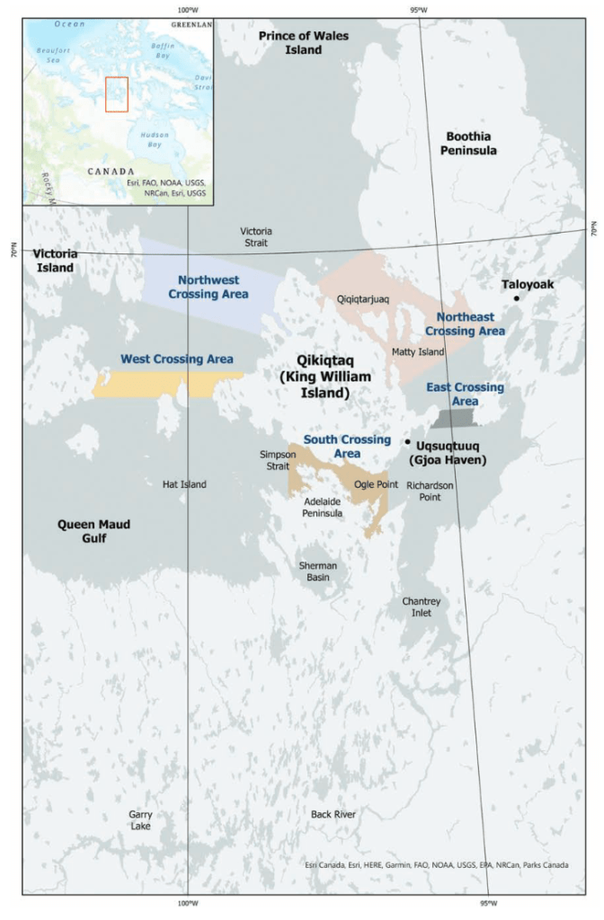 “Building on previous caribou research in Uqsuqtuuq (Gjoa Haven, Nunavut), we explored the connections between caribou and sea ice phenology in 5 community-identified caribou crossing areas around Qikiqtaq (King William Island). We defined freeze-up and breakup based on Uqsuqtuurmiut (people of Uqsuqtuuq) knowledge of caribou habitat requirements, to orient our analysis to the complex and multifaceted hazards that caribou can encounter while moving through their dynamic and unpredictable sea ice habitat. We investigated the reliability of caribou sea ice habitat surrounding Qikiqtaq, prioritizing key transitional periods with intensified caribou movement…We encourage others to consider the needs of wildlife sea ice users when assessing or providing ice information.”