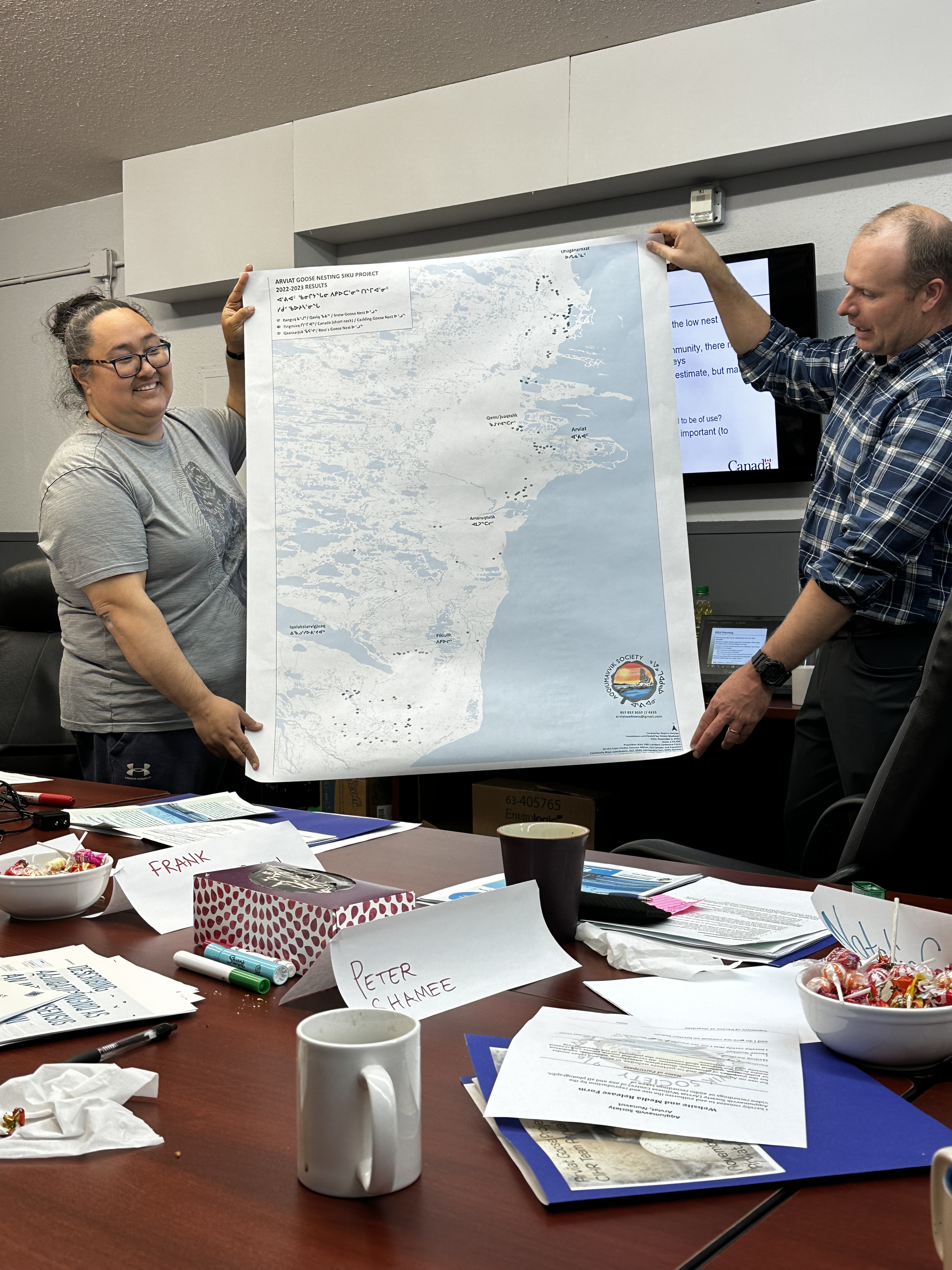 - Reviewing results of the 2023 goose monitoring work completed by the Aqqiumavvik Society and members of the Young Hunters Program;