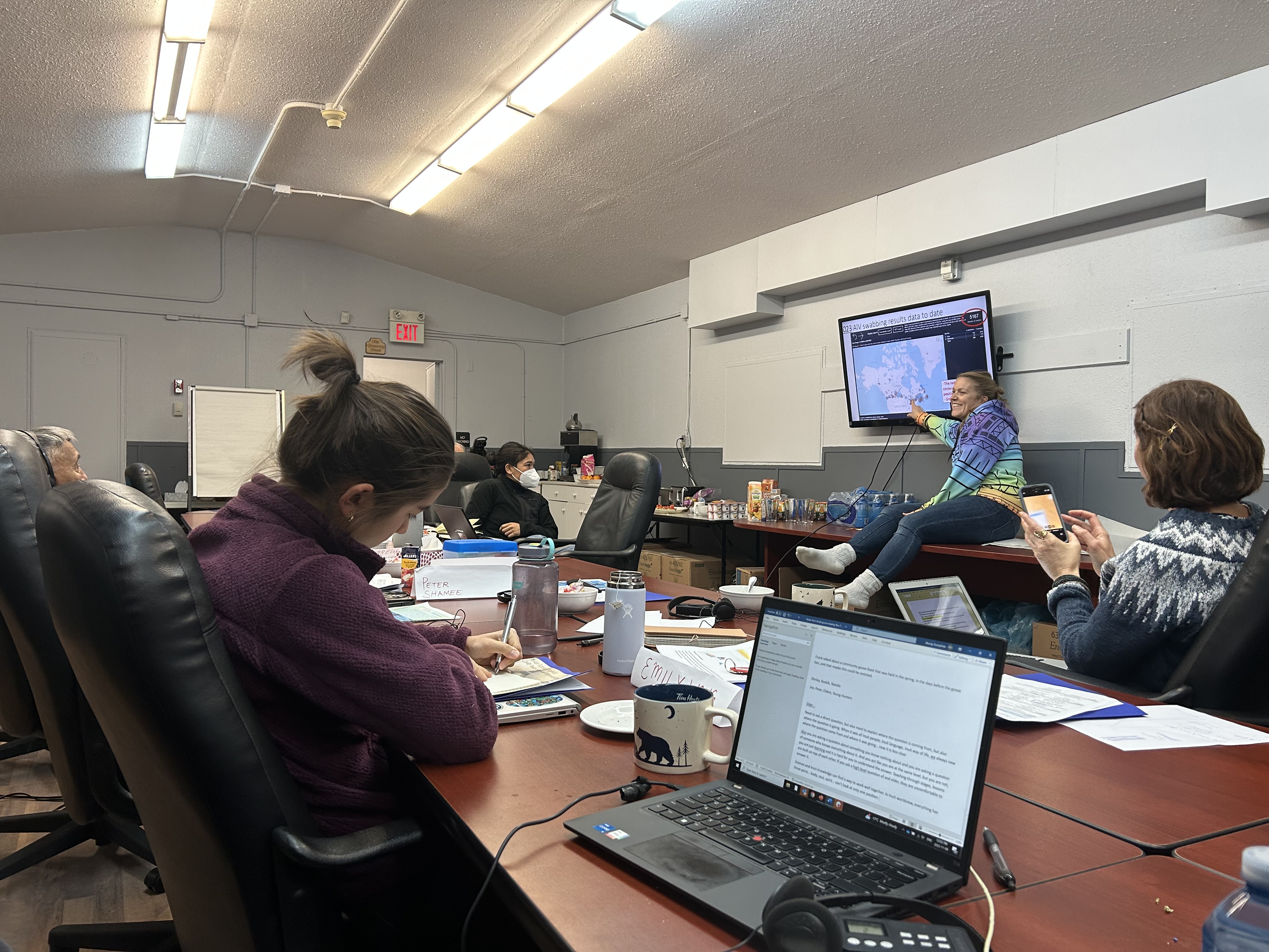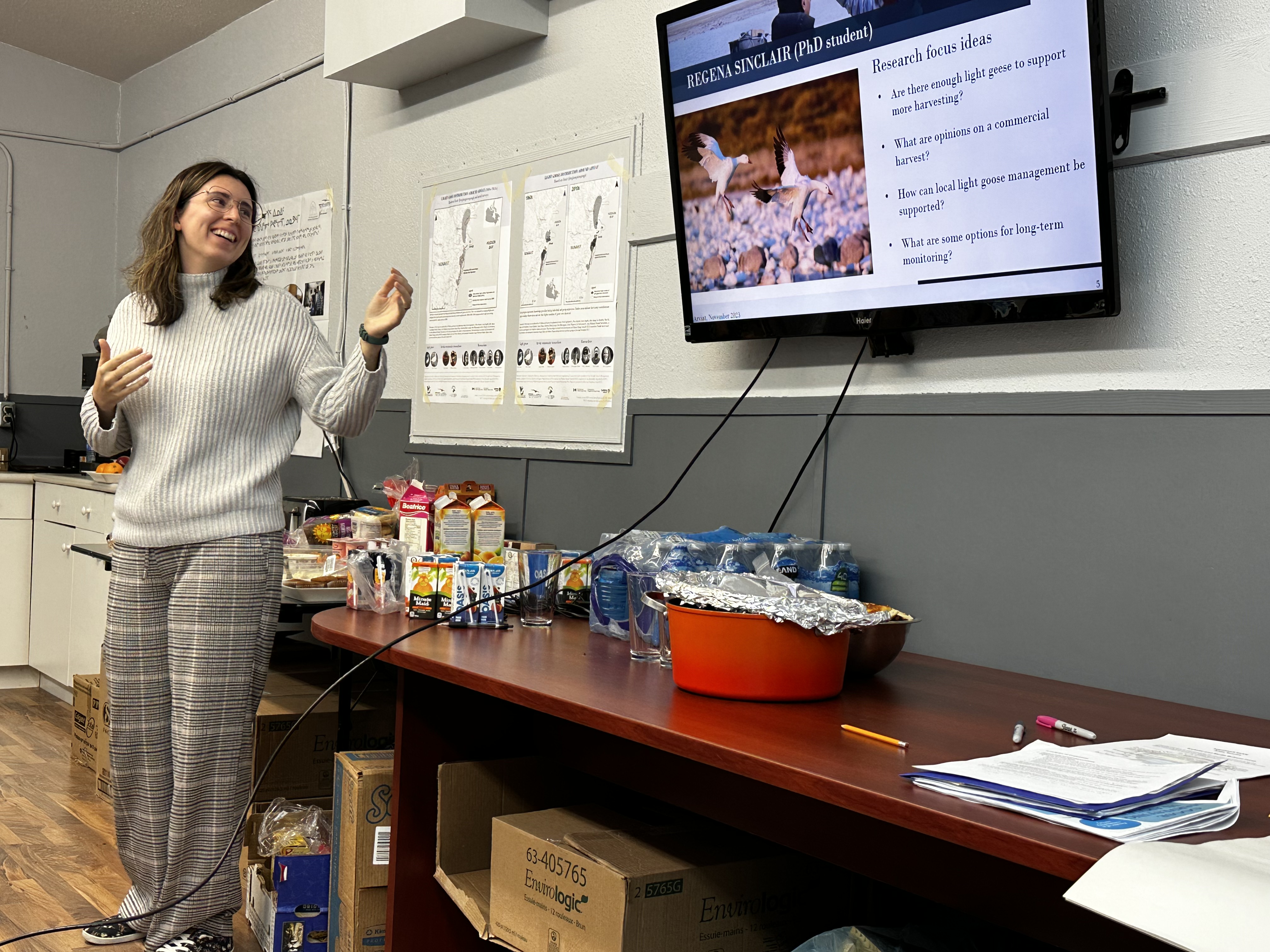 Throughout the week, we heard presentations by team members to help establish a common knowledge base around goose abundance, distribution, health, and use. As Elder Tunaala shared, both sides (Inuit knowledge holders and non-Inuit scientists) are experts in their own way and before we can build something together, we must first know how to relate to each other. Presentations included: