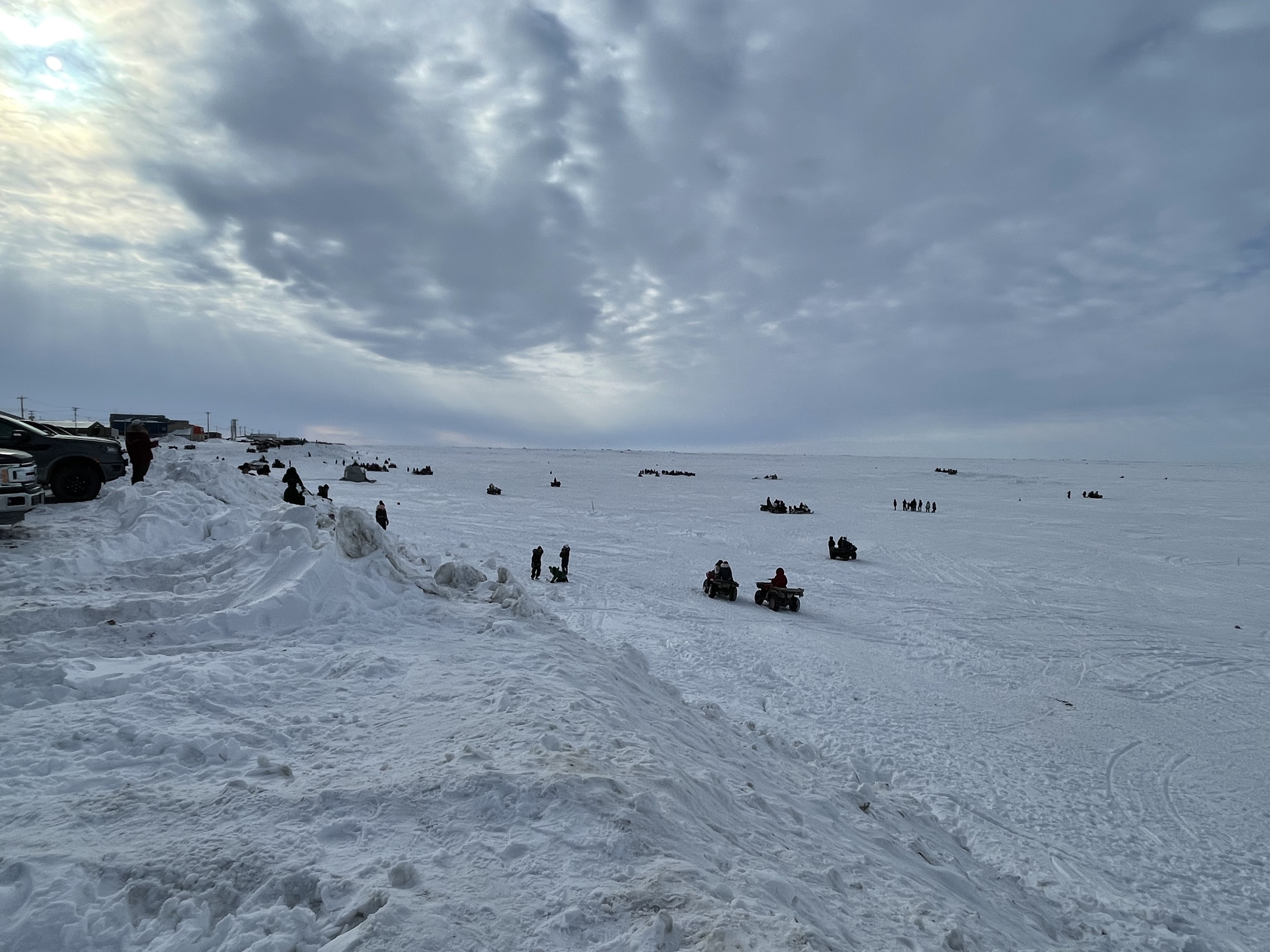 Building relationships is the first stage of the Aajiiqatigiingniq Research Methodology (ARM) and emphasizes the importance of establishing mutual trust at the beginning of the research process. Rowan joined a two-night muskox hunting expedition organized by the Aqqiumavvik Society and led by the Arviat Young Hunters. This trip included eight students and an Elder from Naujaat as well as 10 leaders and youth from Arviat Young Hunters traveling on skidoos pulling qamutiks loaded with equipment and people. This provided an in-depth experience of Inuit cultural practices and fostered strong connections among all those who participated. Being actively involved in the hunt and food preparation was incredibly rewarding. Time on the land brought people closer together through shared experiences like travelling overnight into the early morning and the intensity of the muskox butchering process. This experience helped to establish a solid foundation of good relationships based on trust, respect, and shared cultural appreciation.