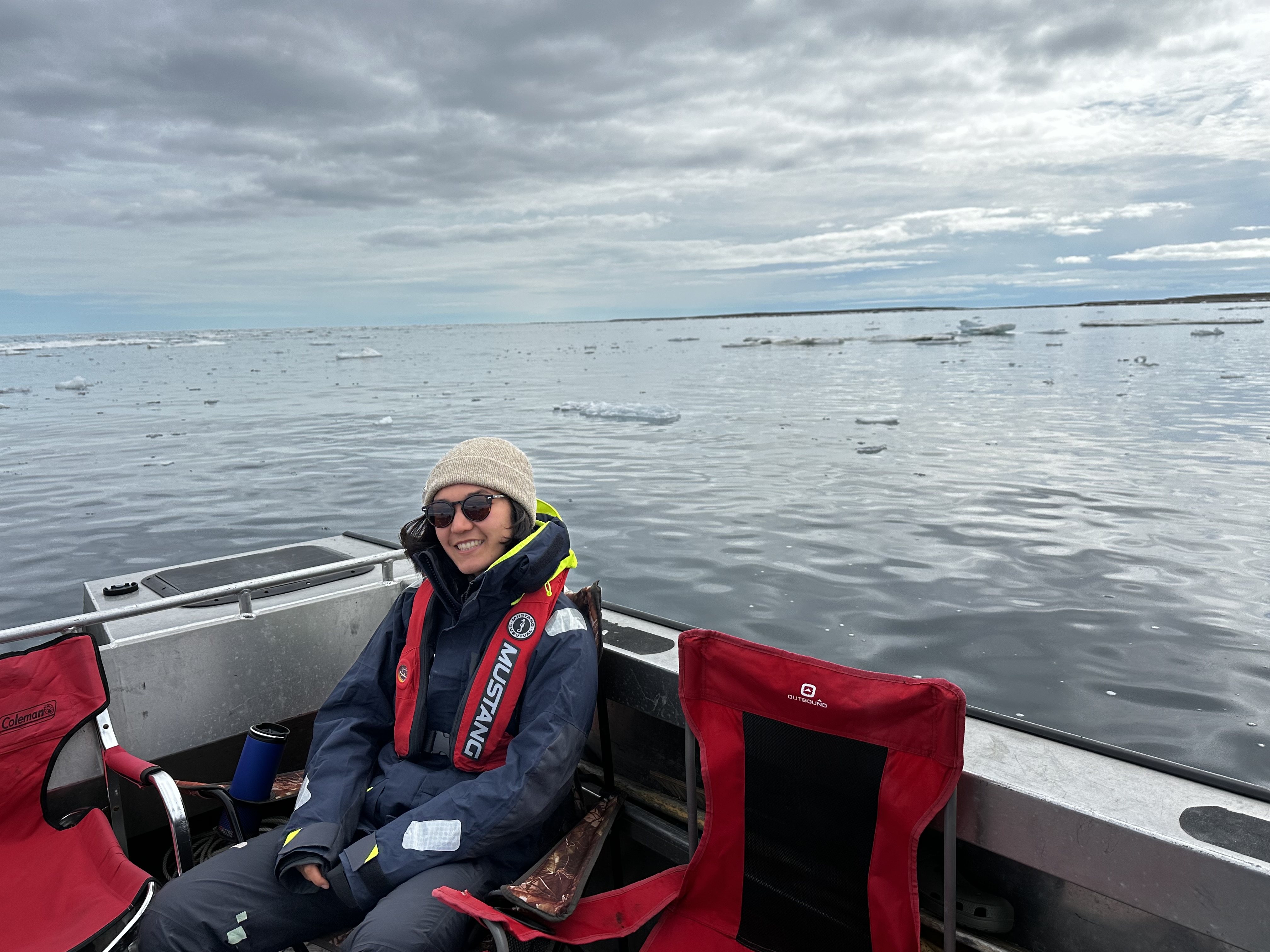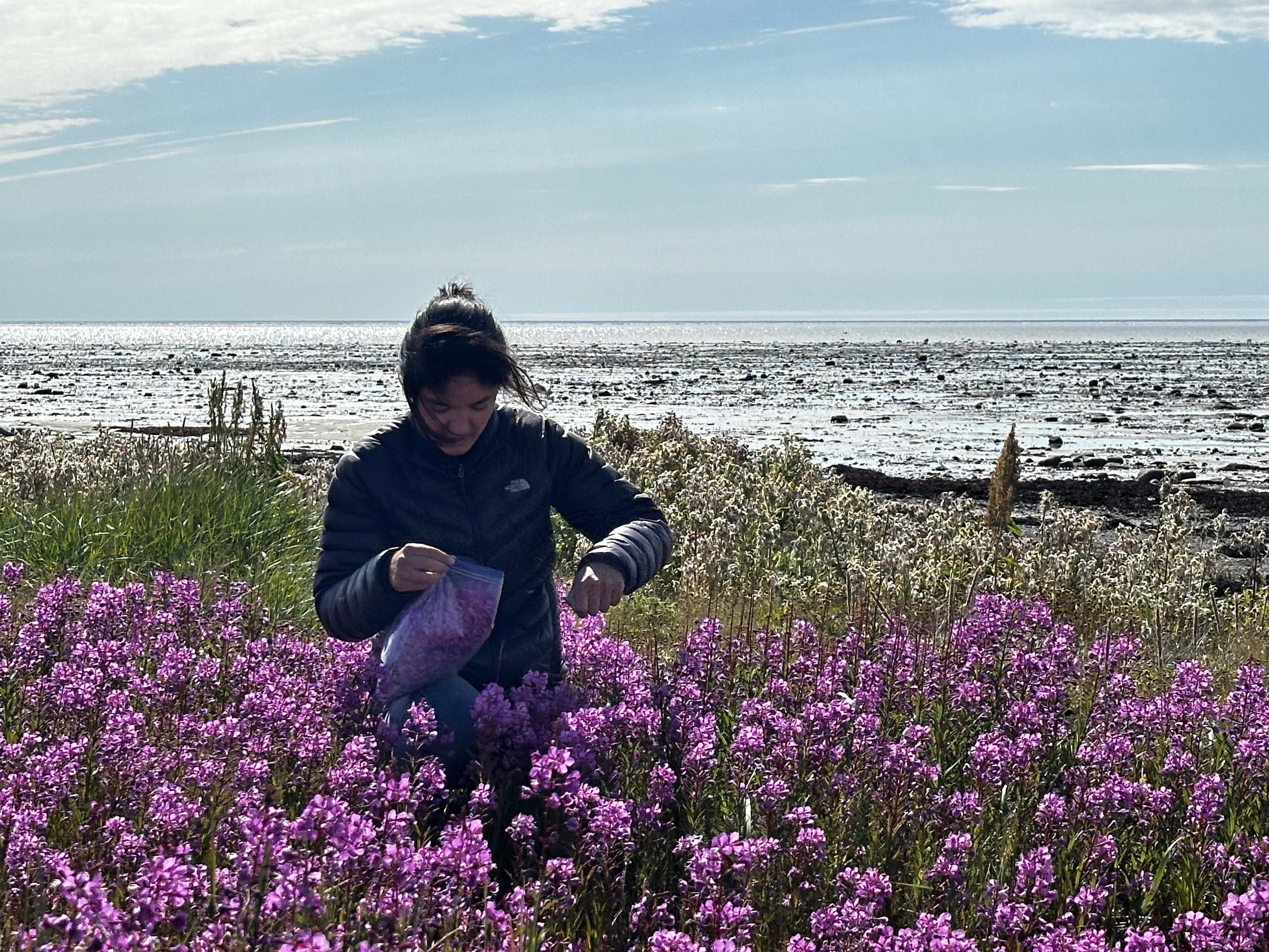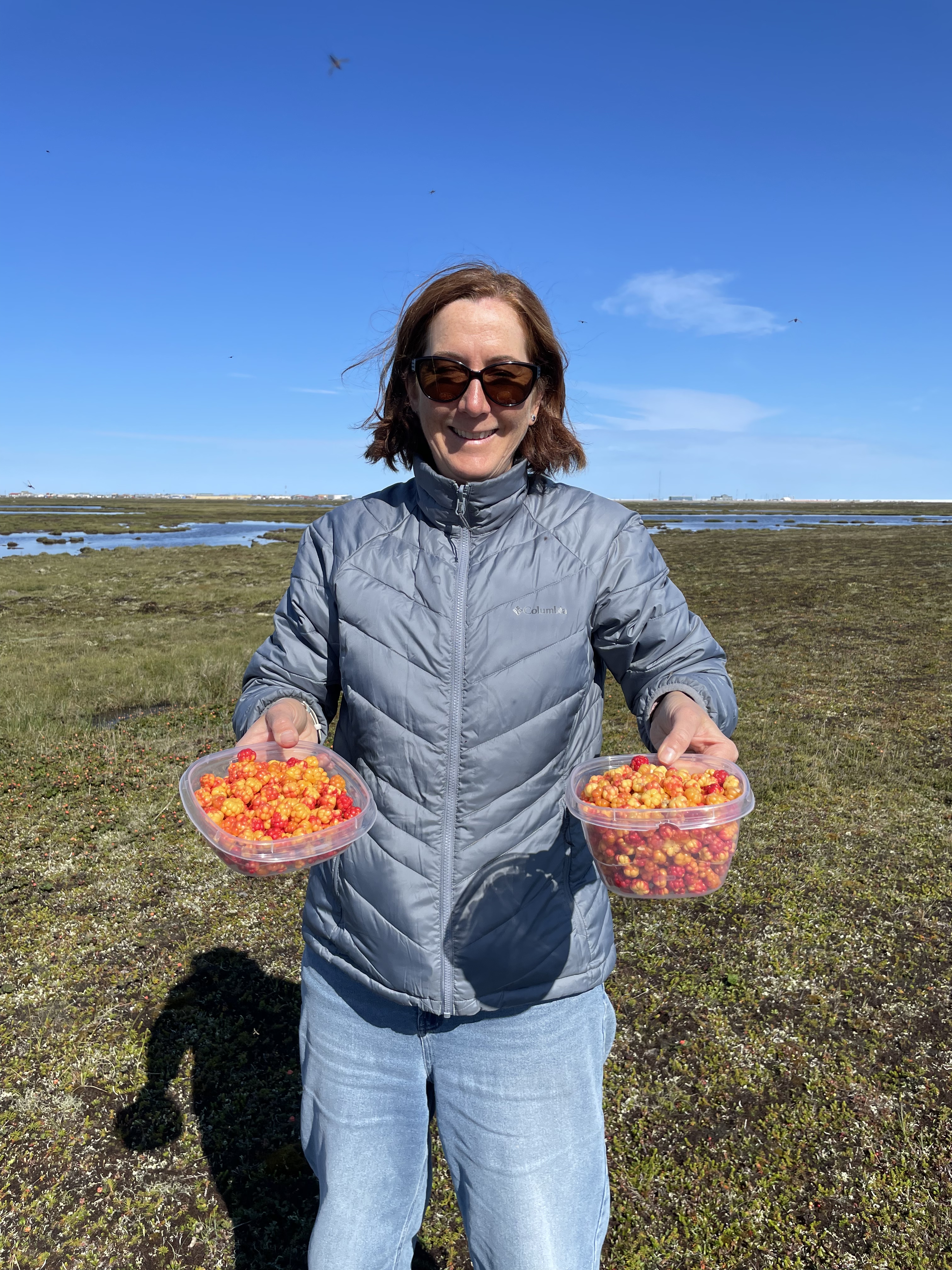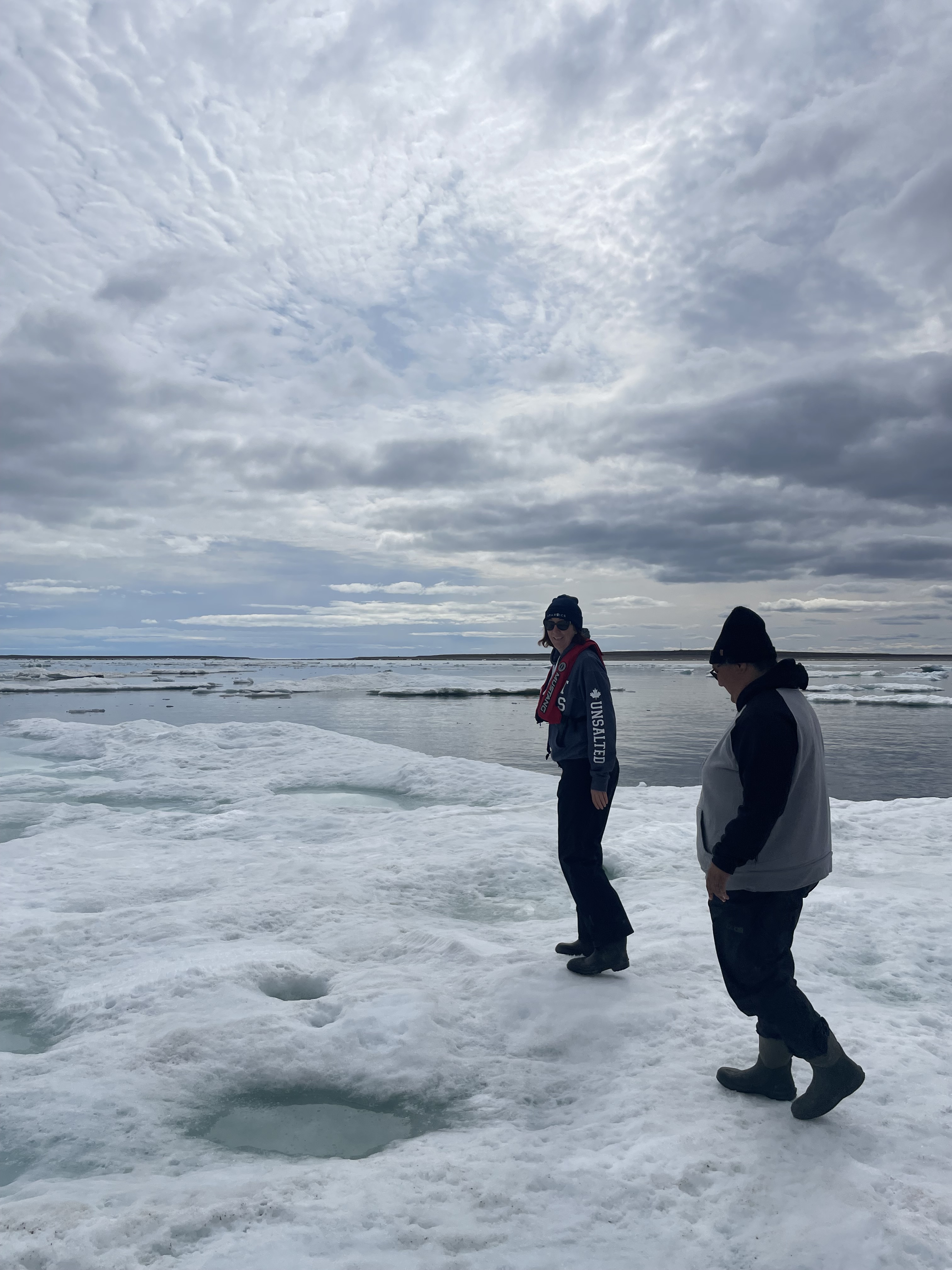 We also went ATVing, boating, and cloudberry and fireweed picking. Our boating experience was particularly exciting as we witnessed up close the rare (not even Elders can remember it happening in their lifetime at this time of year) sight of ice pans choking Hudson Bay. Eating freshly caught char – raw and panfried – was a real treat as was getting to observe char fishing and seal hunting.