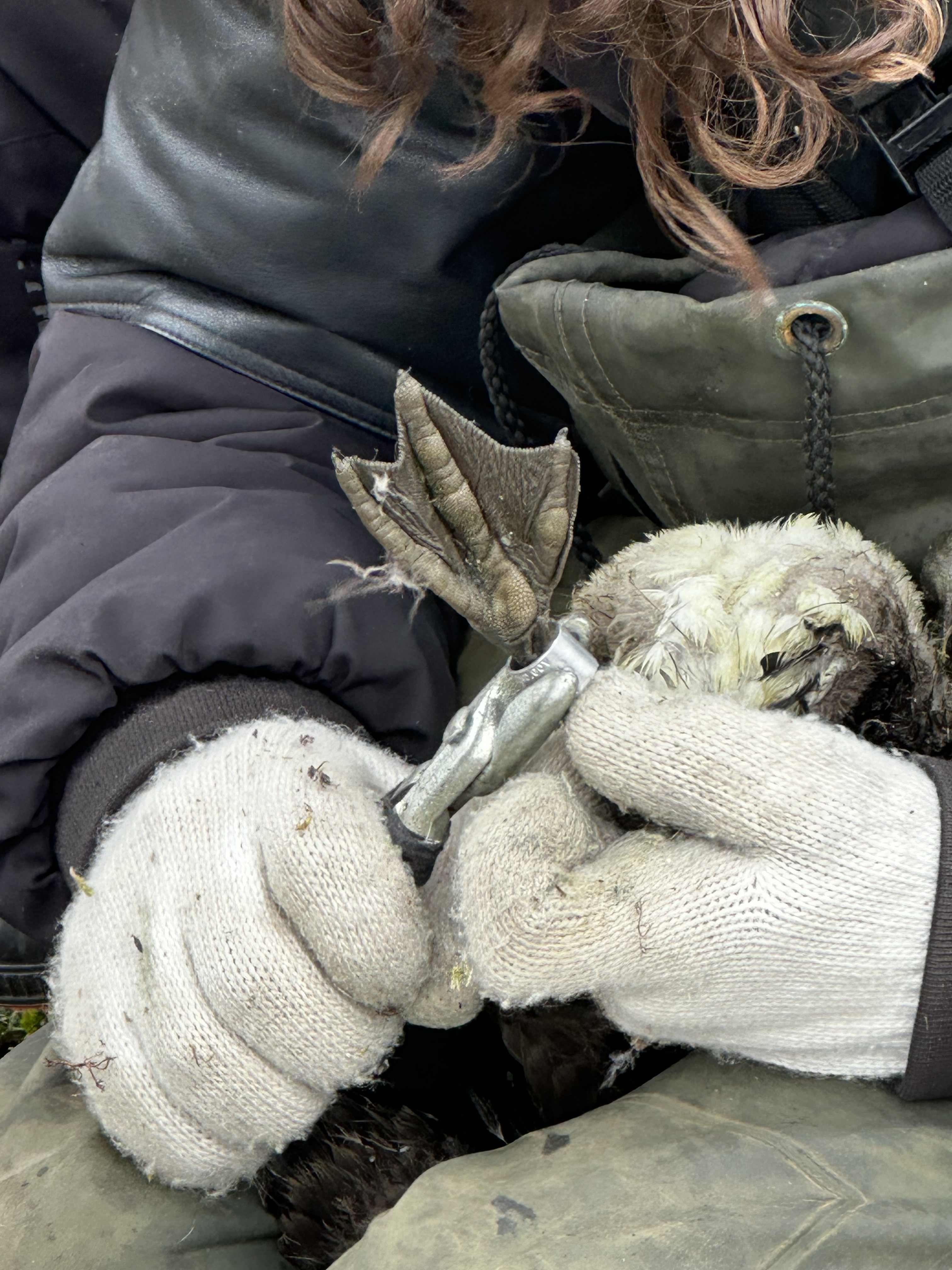 After each day of banding Kukik and Natalie shared their photos and videos with each other, then Kukik posted them on the Aqqiumavvik Society Facebook page. This is how we updated the community about our work, how it was going, and our achievements. Kukik also made a fun TikTok video out of the first ‘comments of the day’.