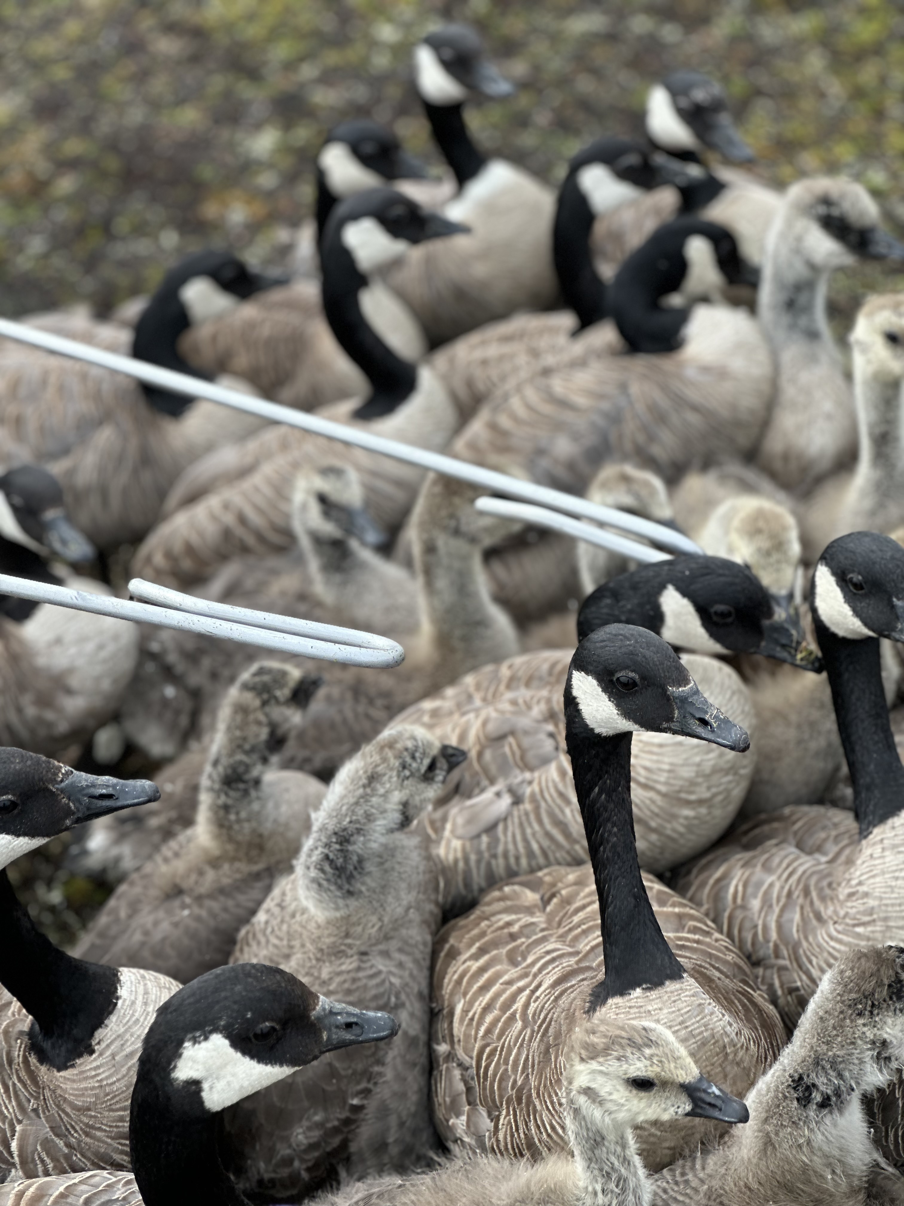 Banding is the main monitoring program for Snow, Ross’s, and Cackling Geese across North America and is conducted each year in Nunavut. Banding is important for harvest management, and for understanding the status of the international goose population. Historically, Canadian Wildlife Service (CWS) banded geese near Arviat but stopped in the mid-2000s when a different site in Nunavut was chosen because additional species of geese could be banded there. In 2022, in collaboration with CWS, trained Young Hunters began reestablishing banding of Snow, Ross’s, and Cackling Geese around Arviat.
