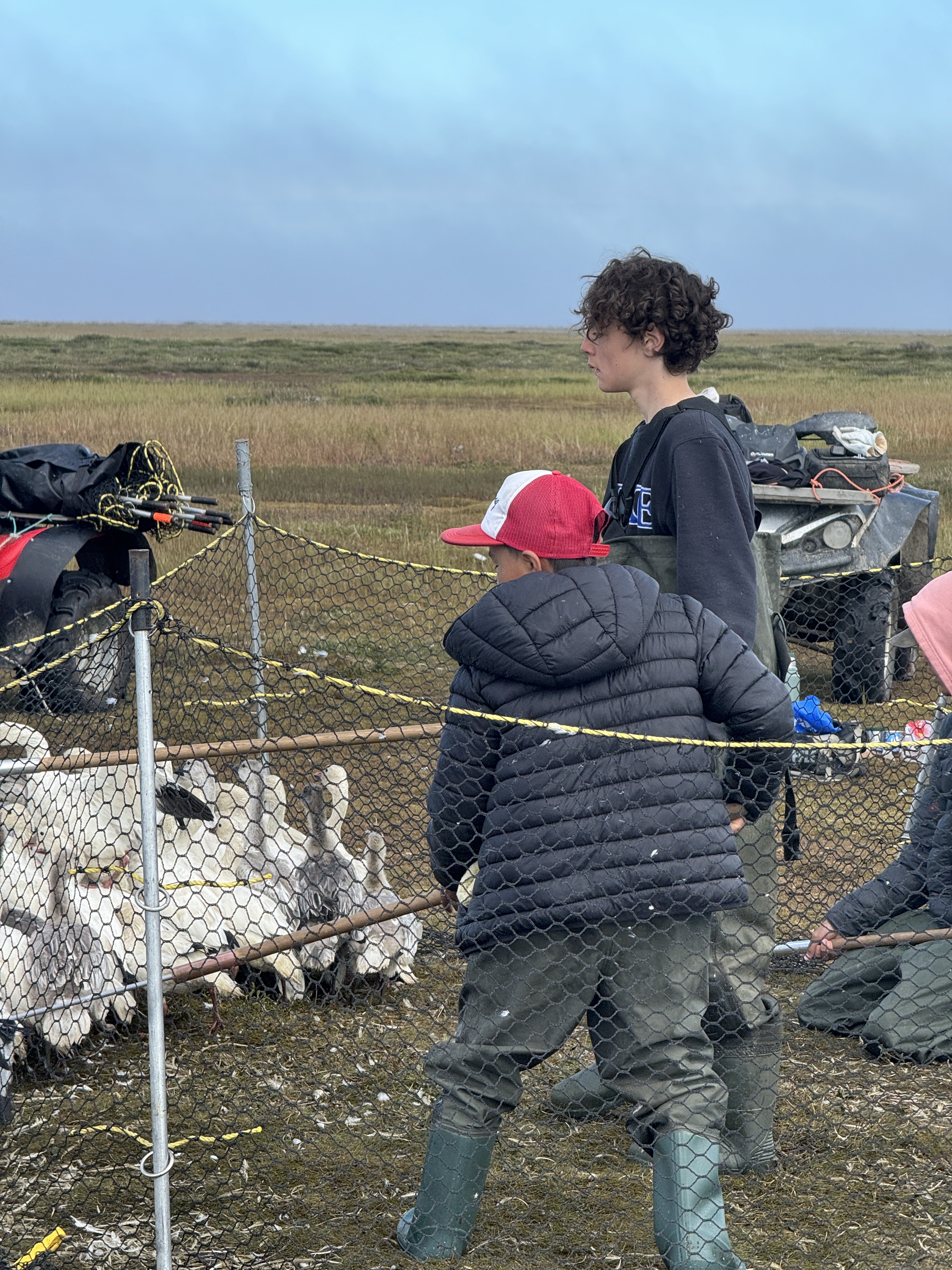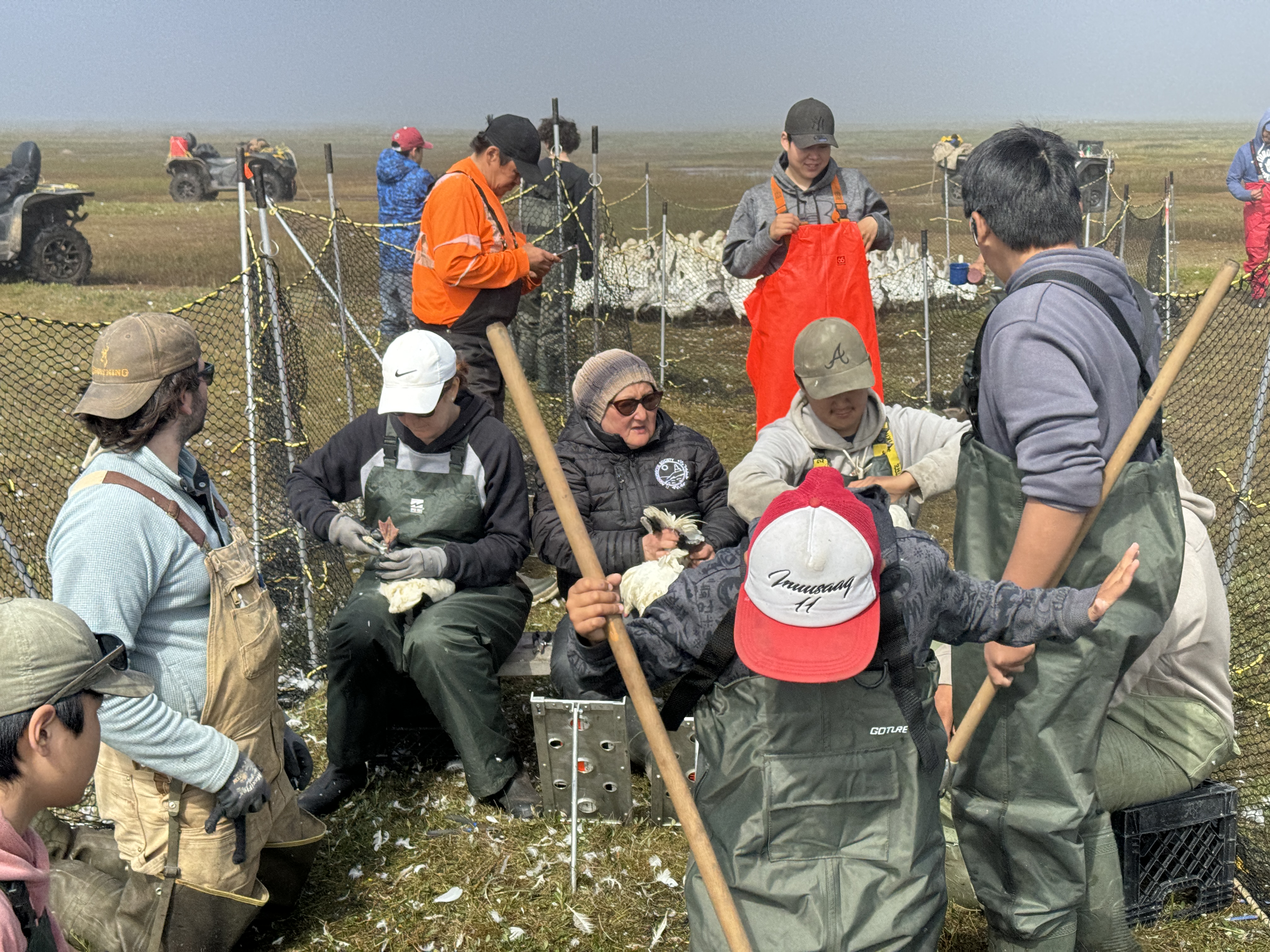 Spending time on the land (which includes water and ice) together, working and eating and travelling together, new friendships were made and existing relationships strengthened. We laughed, talked, learned from and taught each other, shared ideas, asked questions, problem solved, strategized, supported each other, and became more and more efficient as a team. The Young Hunters and new-to-banding Aqqiumavvik staff mastered the techniques of herding, catching, and banding geese; observing, listening, paying attention, problem solving and above all persevering and doing it over and over and over and in the process became experts.