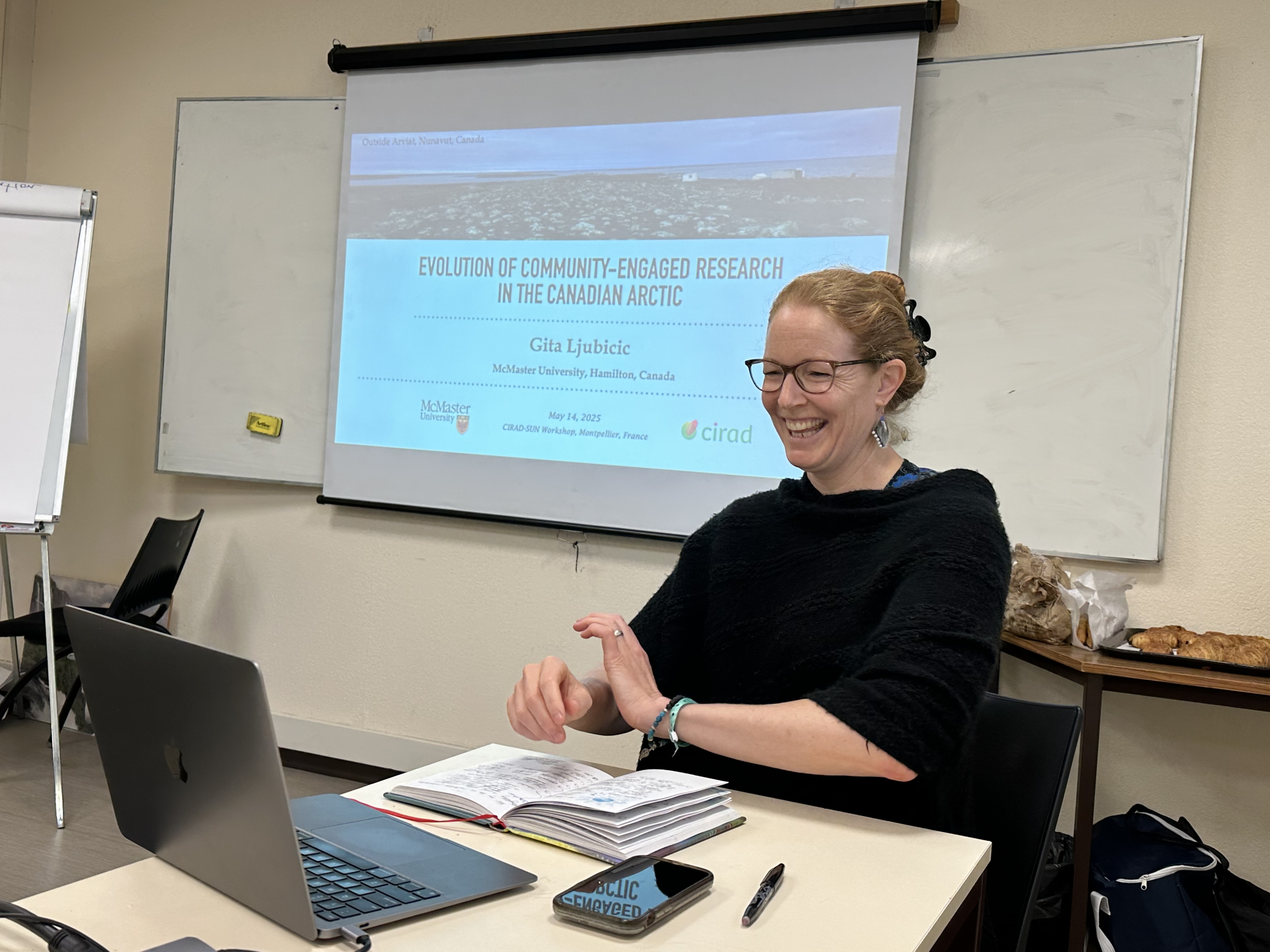 At the CIRAD–SUN workshop held May 13–14, 2025 in Montpellier, France, SUN Team members and French researchers from the UMR SENS research unit (Joint Research Unit (UMR), Knowledge, Environment and Society (SENS)) came together for the first time at the CIRAD Lavalette campus. Over two intense and inspiring days, we shared methodologies and explored collaborative opportunities in community-driven and community-engaged research. Our workshop had a strong emphasis on ways to engage a wide range of Indigenous, public, and decision-making audiences in dialogue for research design, conservation initiatives, and education across Africa, Canada, and South America.