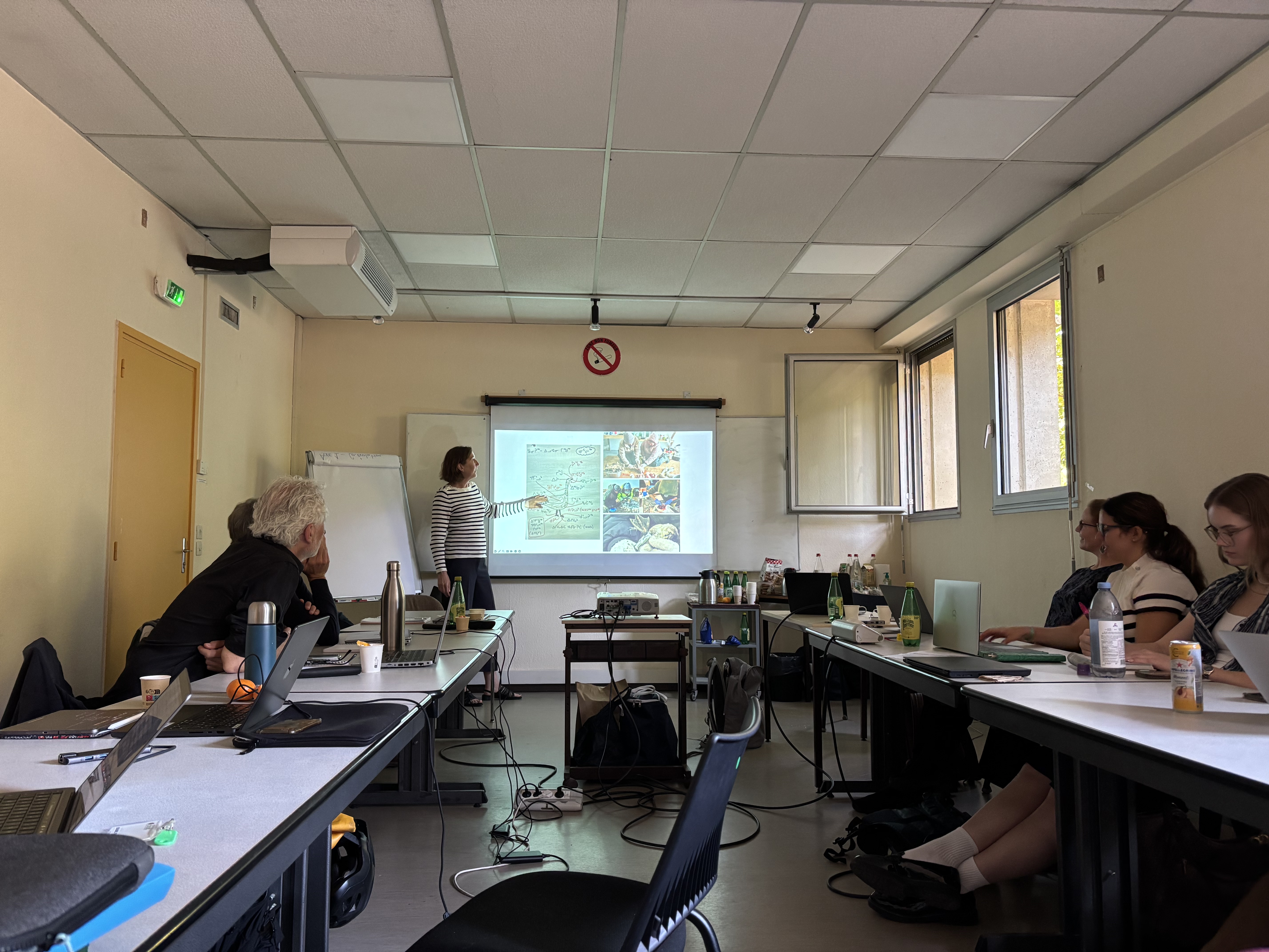 The second day of the workshop featured a presentation by Nicolas Gaidet-Drapier (UMR-SENS) sharing his research exploring – and broadening perspectives on – human-animal relationships. He showed examples from the “Otter Project”, part of the Vies-à-Vies documentary initiative uses multimedia storytelling to deepen public engagement and reflection. It was a compelling method that involved showing people clips of what happens in natural spaces like paths, riverbanks, and meadows when humans aren’t around. Through carefully crafted seasonal videos, it reveals the diverse life, both human and non-human, that inhabits these places. Daytime and nighttime footage is used to show overlapping uses and to get people to reflect on shared spaces and animals as neighbours.