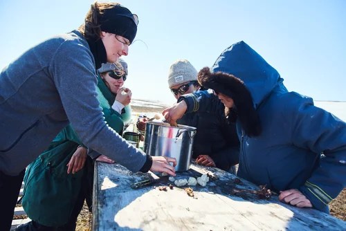 The visit also included a special week with Environment and Climate Change Canada co-supervisor Dr. Dominique Henri, who traveled with her longtime friend Anne Bergeron, a food photographer from Paris, France. During this time, the group collaborated with Aqqiumavvik staff and community members to cook and photograph goose dishes for a cookbook that highlights both historical recipes and new approaches to preparing goose.