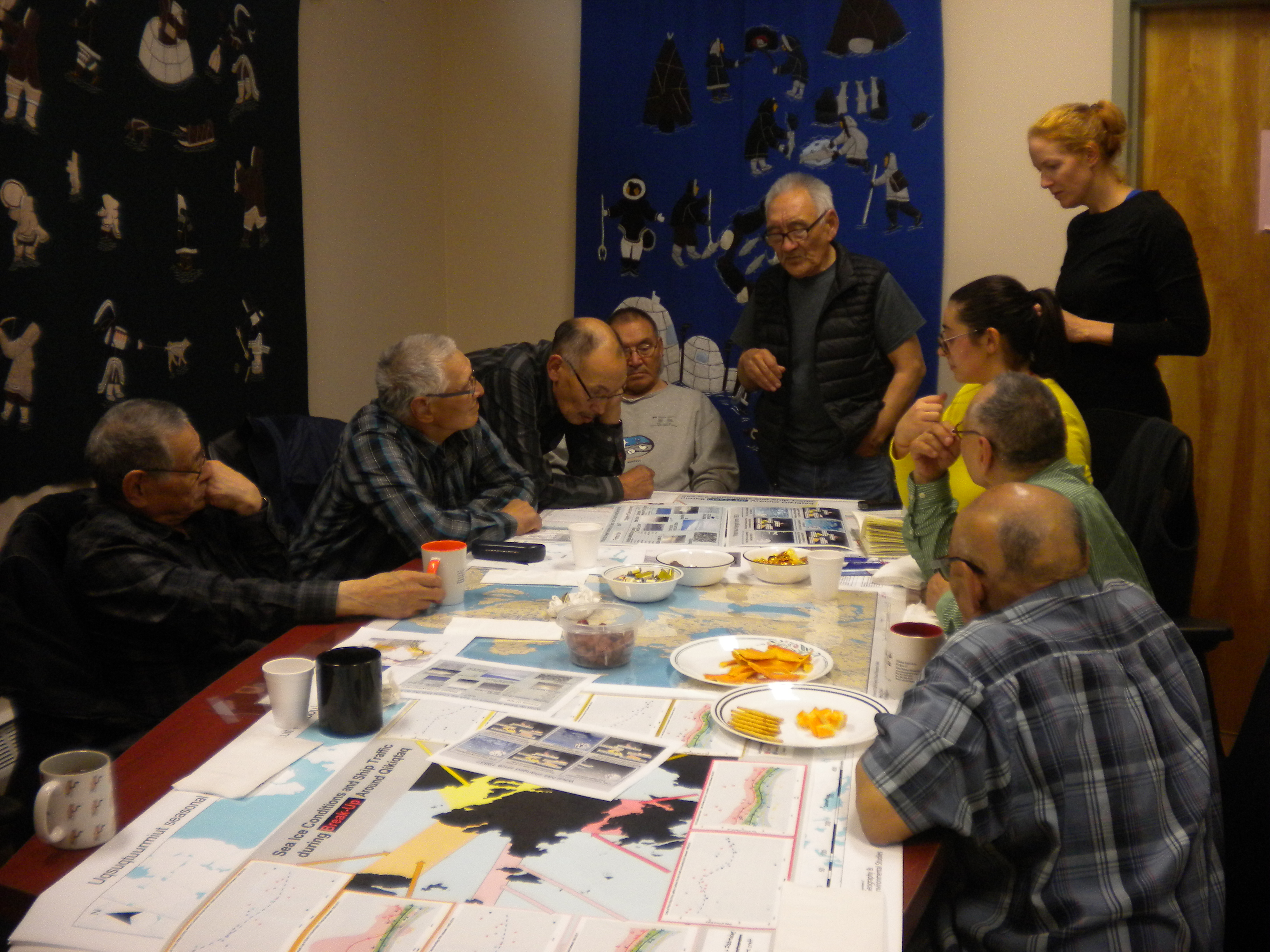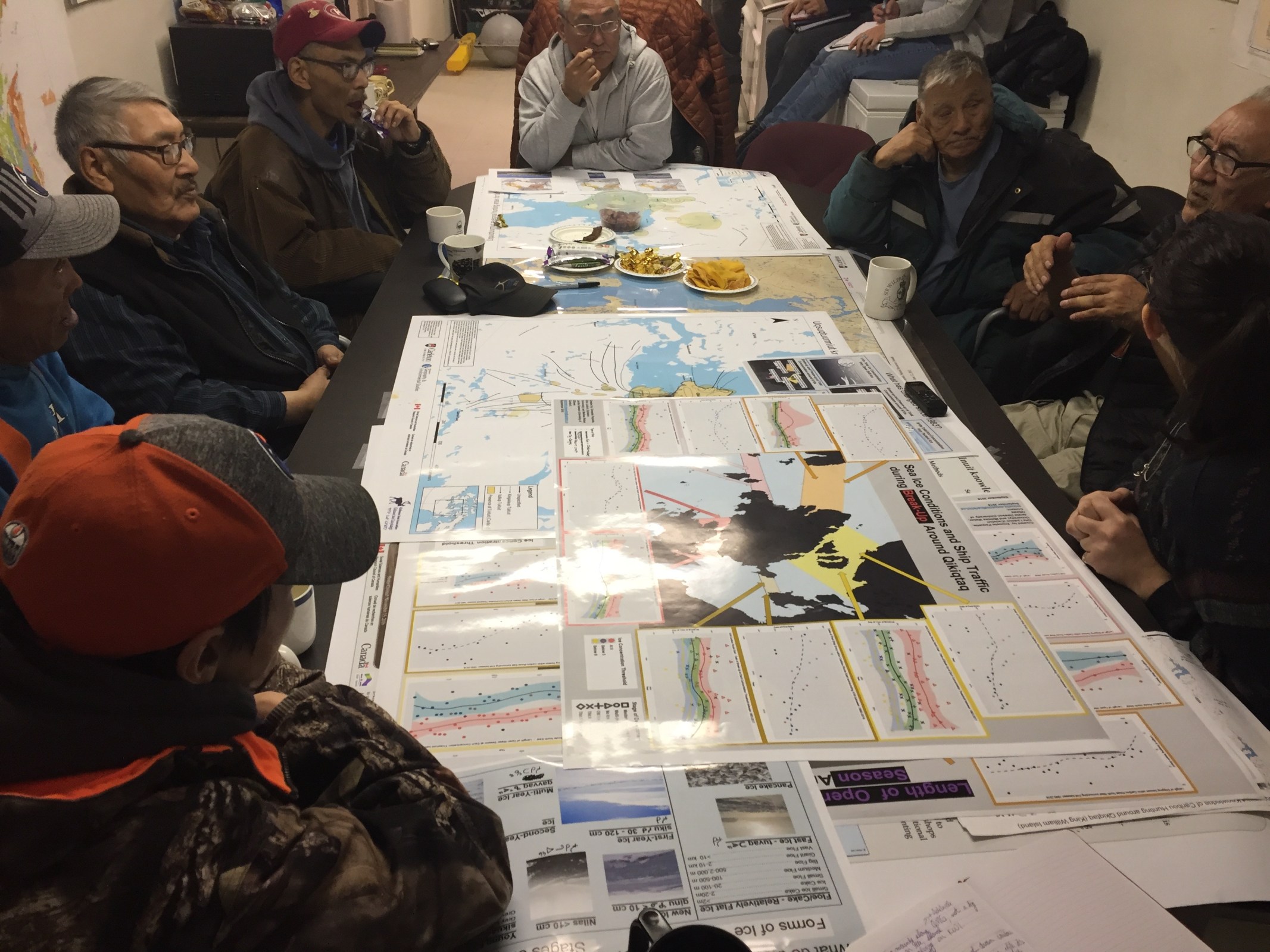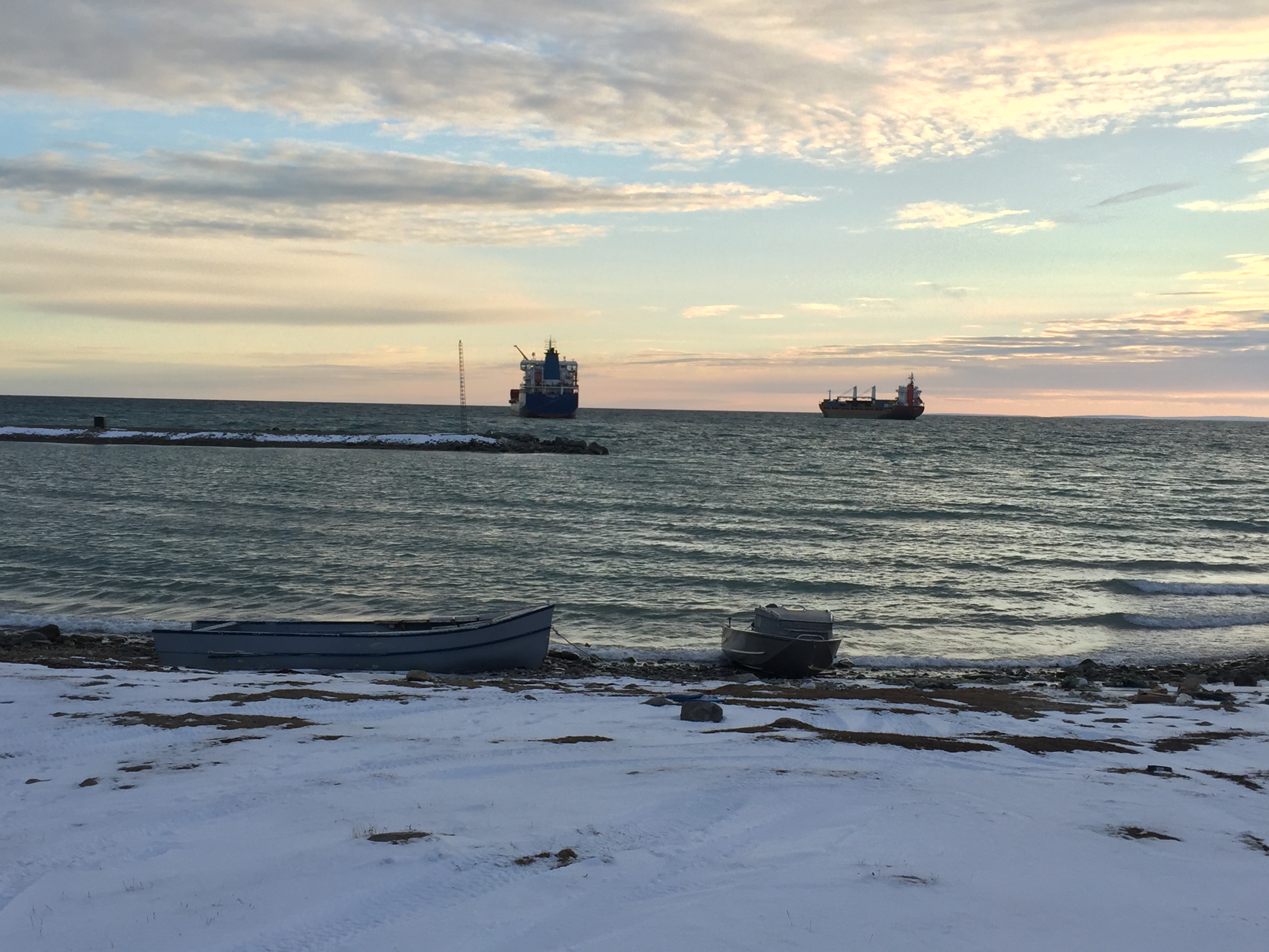 Using Canadian Ice Service regional ice charts we characterized changes in break-up/freeze-up timing, and length of summer open water season between 1983-2017 for the five tuktuit crossings. Using NORDREG datasets that record ship traffic timing, routes, and ship type, we also characterized changes in the amount and timing of ship traffic around Qikiqtaq between 1990-2017. Early results were discussed in workshops in Uqsuqtuuq in September 2018. Uqsuqtuurmiut feedback was essential to help understand local seasonal ice conditions and experiences with ship traffic, and interpret the potential impacts of sea ice or shipping changes on caribou movement and the community.