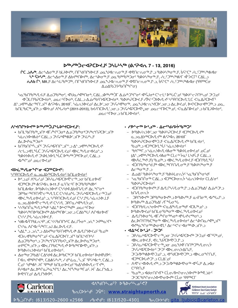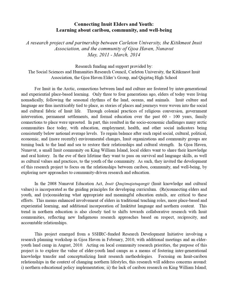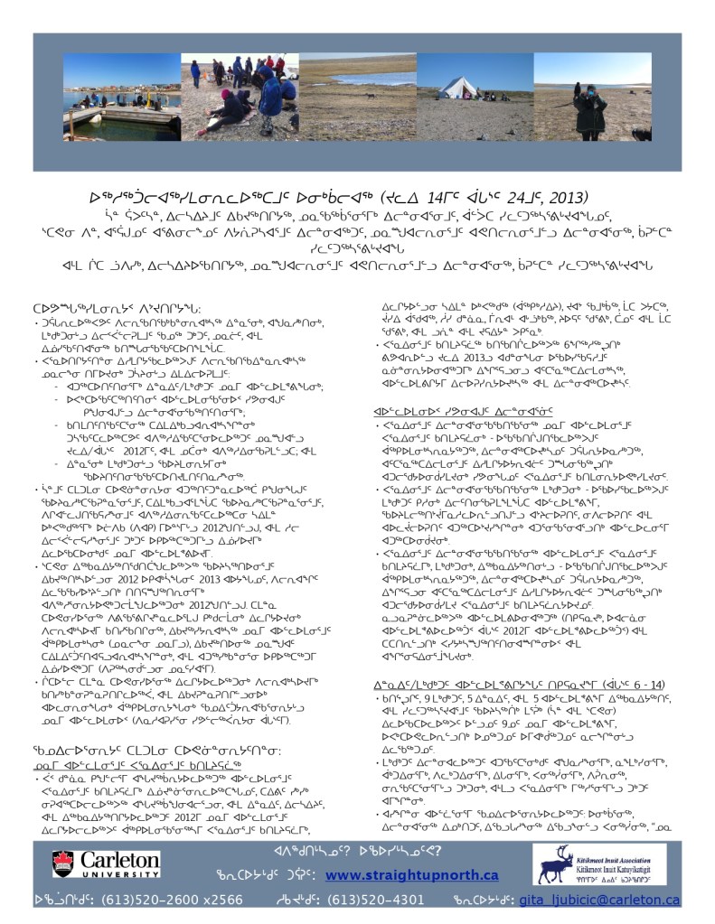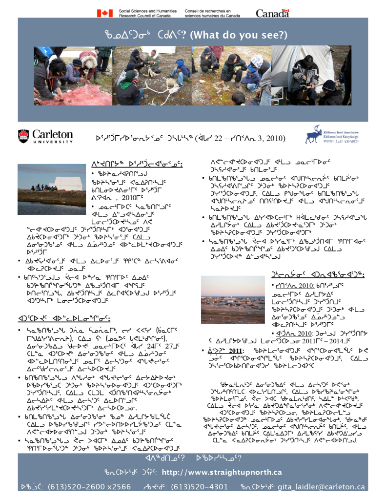 Mearns, R. [MA thesis, 2017] Nunavut, Uqausivut, Piqqusivullu Najuqsittiarlavu (Caring for our Land, Language and Culture): The use of land camps in Inuit knowledge renewal and research. (Carleton University). (https://doi.org/10.22215/etd/2017-12150)