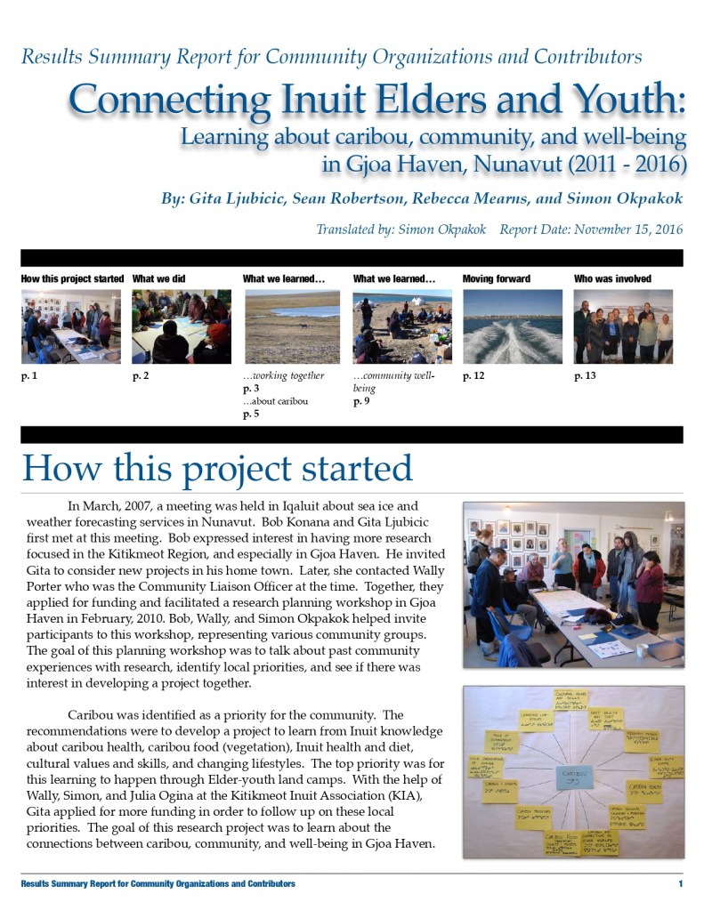 Ljubicic, G., Okpakok, S., Robertson, S., and Mearns, R. 2018a. Uqsuqtuurmiut inuita tuktumi qaujimaningit (Inuit knowledge of caribou from Gjoa Haven, Nunavut): Collaborative research contributions to co-management efforts. Polar Record, 54, 3: 213-233. (https://doi.org/10.1017/S0032247418000372).