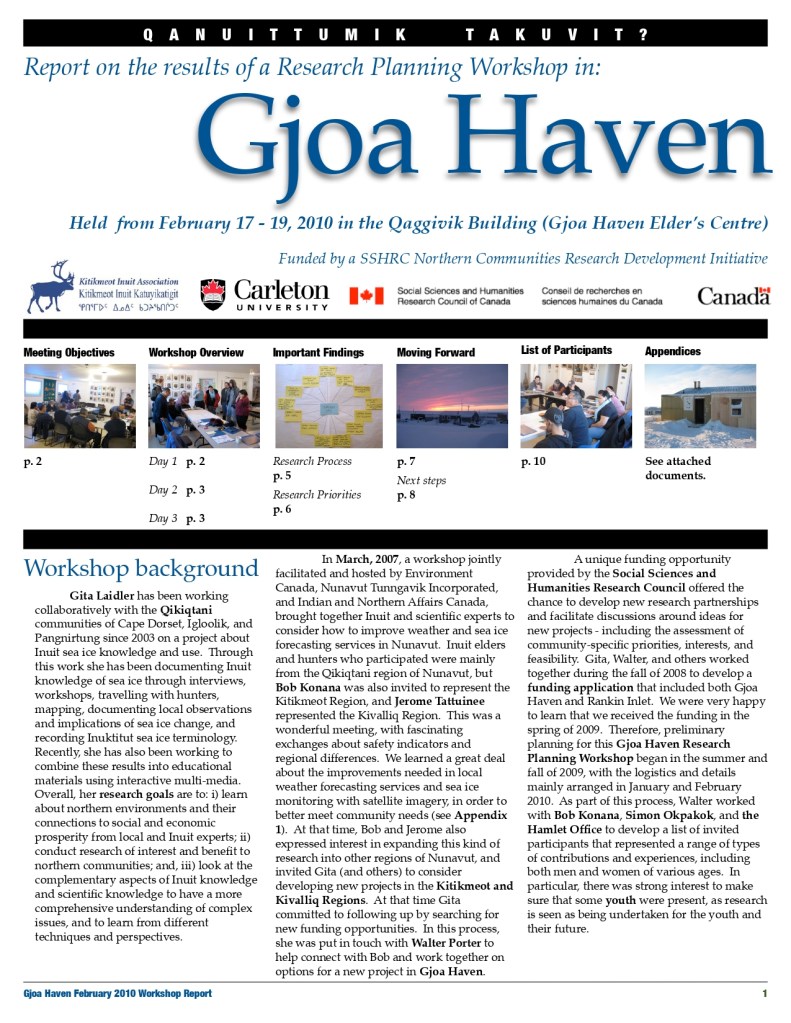 Community contributors from Gjoa Haven have been involved in the following projects:
