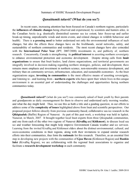 Copies of the documents below, as well as interview, workshop, and land camp recordings, are available locally at the Nattilik Heritage Centre for local access and use.