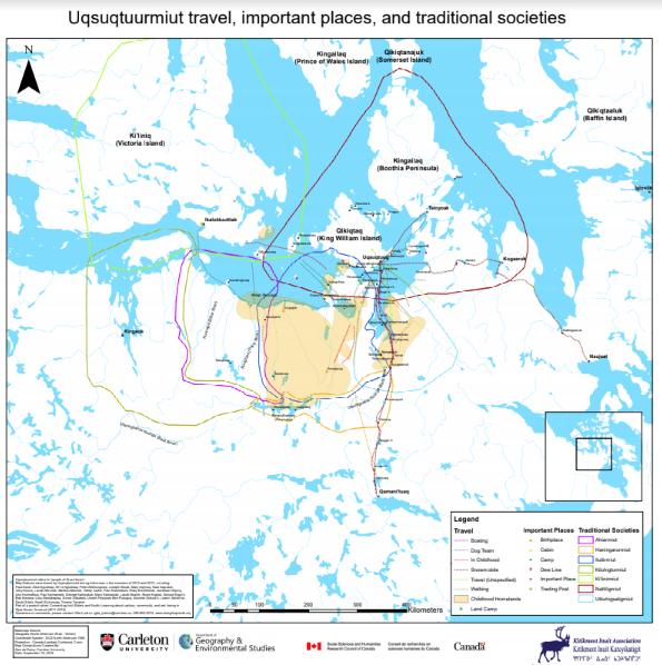 Robertson, S., and Ljubicic, G. 2019. Nunamii’luni quvianqtuq (It is a happy moment to be on the land): Feelings, freedom and the spatial political ontology of well-being in Gjoa Haven and Tikiranajuk, Nunavut. Environment and Planning D: Society and Space, 37, 3: 542-560. (https://doi.org/10.1177/0263775818821129).