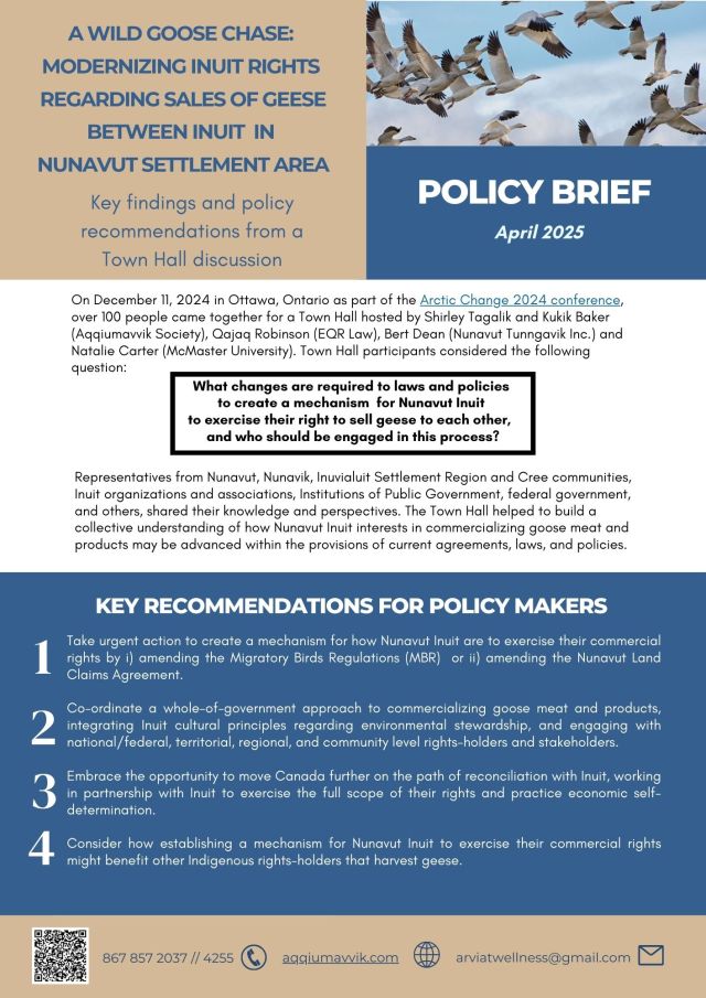 Understanding the impacts of climate change on Arctic nesting geese – a key towards Inuit food sovereignty in Arviat, Nunavut