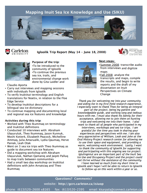 Karpala, K. [MA thesis, 2010] Adapting to a World of Change: Inuit Perspectives of Climate Change in Igloolik, Nunavut. (Carleton University). (https://doi.org/10.22215/etd/2010-08788