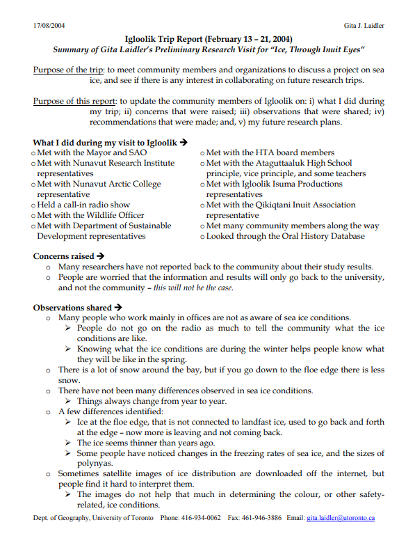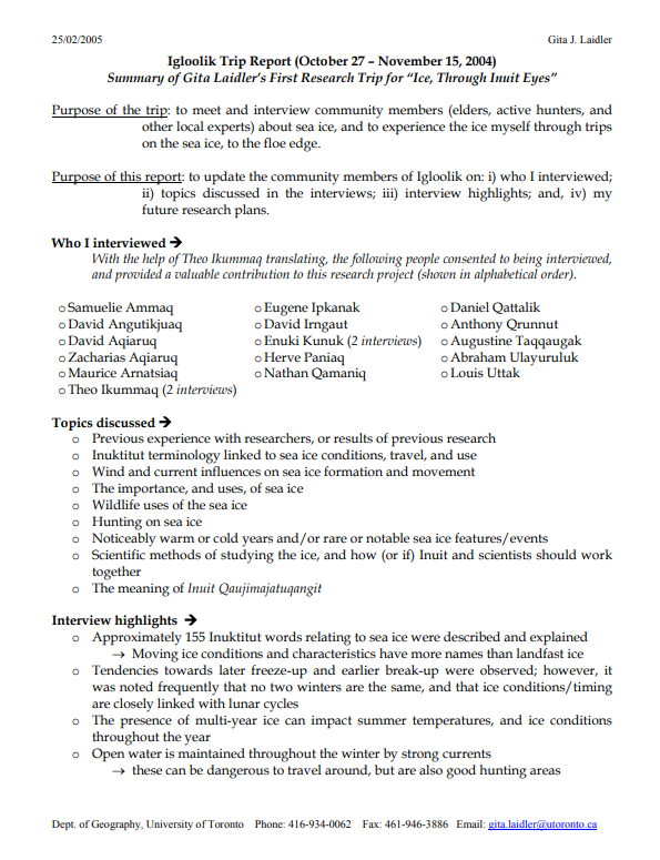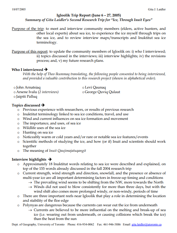 Laidler, G. J. [PhD thesis, 2007] Ice, Through Inuit Eyes: Characterizing the importance of sea ice processes, use, and change around three Nunavut communities. (University of Toronto).