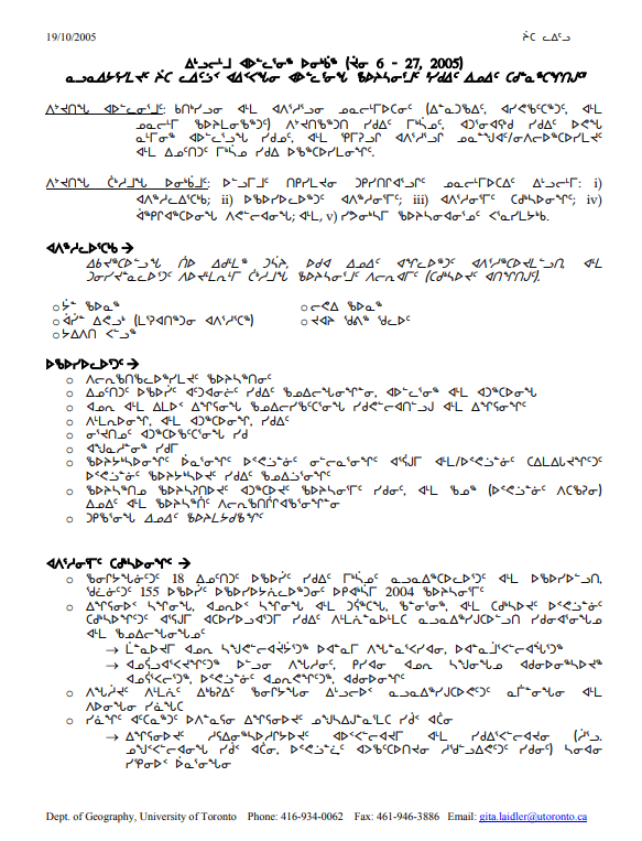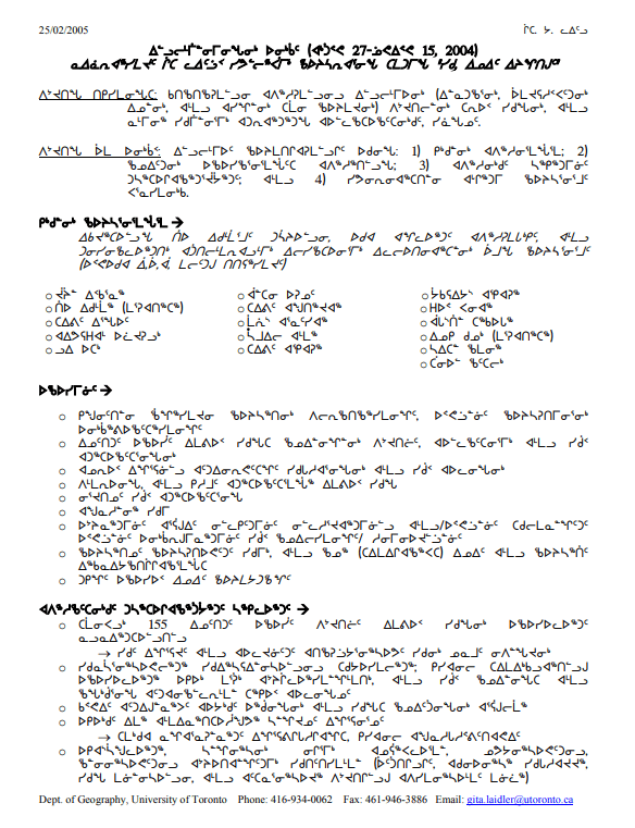 Grimwood, B. S. R., Doubleday, N. C., Ljubicic, G. J., Donaldson, S. G., and Blangy, S. 2012. Engaged acclimatization: Towards responsible community-based participatory research in Nunavut. The Canadian Geographer, 56, 2: 211-230. (https://doi.org/10.1111/j.1541-0064.2012.00416.x).