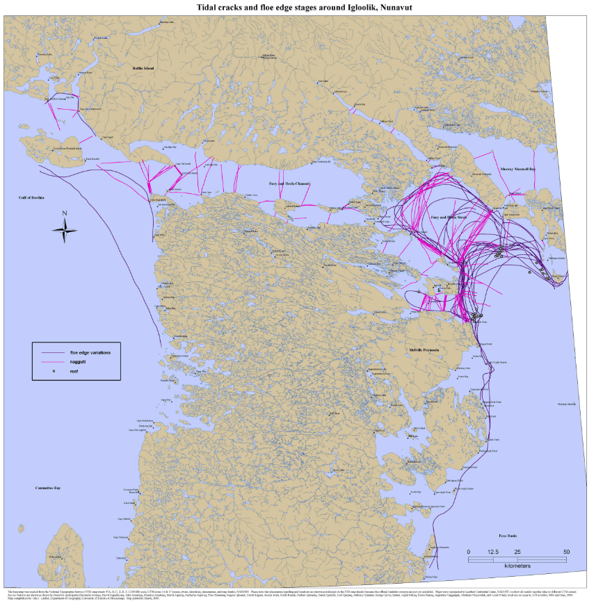 Aporta, C., Taylor, D. R. F., and Laidler, G. J. 2011. Geographies of Inuit sea ice use: introduction. The Canadian Geographer, 55, 1: 1-5. (https://doi.org/10.1111/j.1541-0064.2010.00339.x).