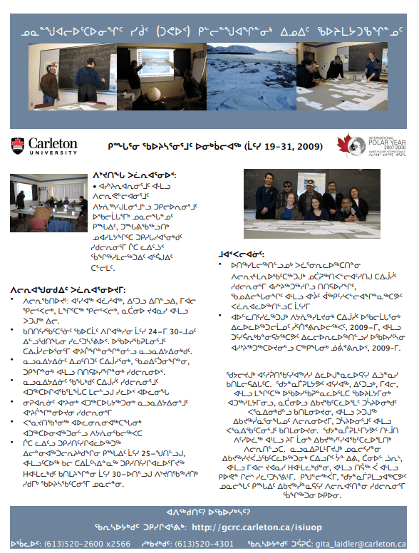 Pearce, T., Ford, J., Laidler, G., Smit, B., Duerden, F., Allarut, M., Andrachuk, M., Baryluk, S., Dialla, A., Elee, P., Goose, A., Ikummaq, T., Joamie, E., Kataoyak, F., Loring, E., Meakin, S., Nickels, S., Scott, A., Shappa, K., Shirley, J., and Wandel, J. 2009. Community Collaboration and Climate Change Research in the Canadian Arctic. Polar Research, 28: 10-27. (https://doi.org/10.1111/j.1751-8369.2008.00094.x)