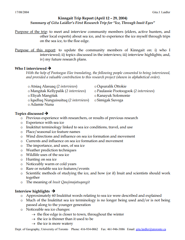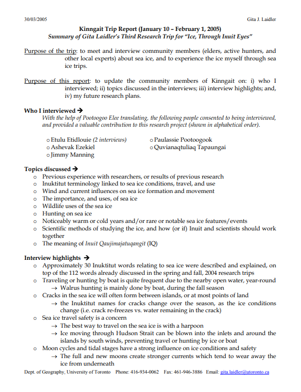 Laidler, G. J. [PhD thesis, 2007] Ice, Through Inuit Eyes: Characterizing the importance of sea ice processes, use, and change around three Nunavut communities. (University of Toronto).