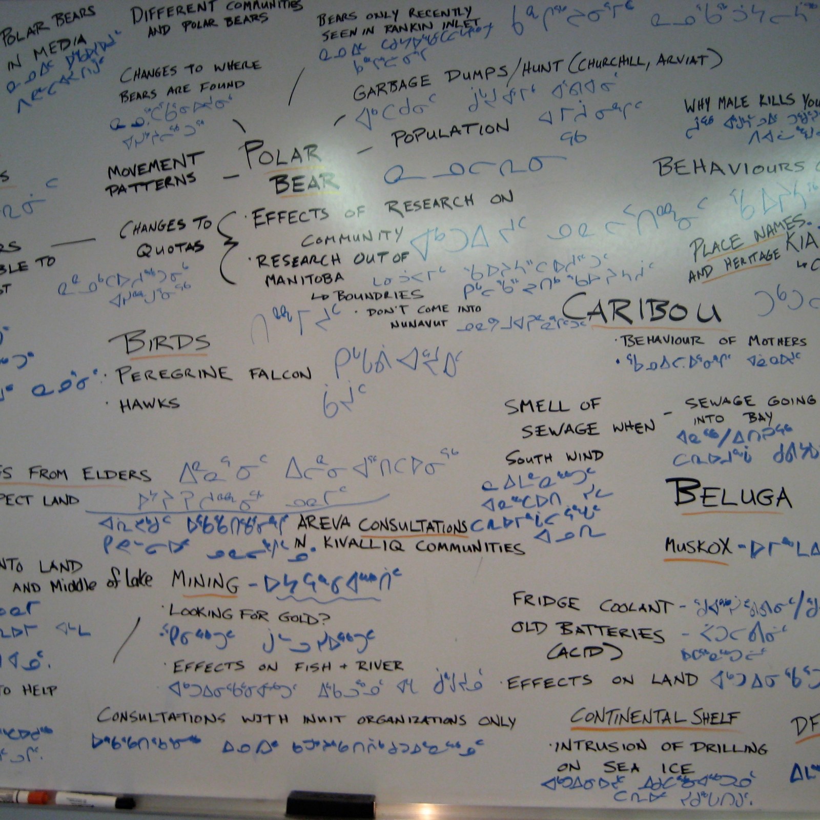 We worked with the Kivalliq and Kitikmeot Inuit Association Community Liaison Officers (Veronica and Walter) to organize follow-up workshops in Rankin Inlet (December 2009) and Gjoa Haven (February 2010). These were exploratory workshops to understand: