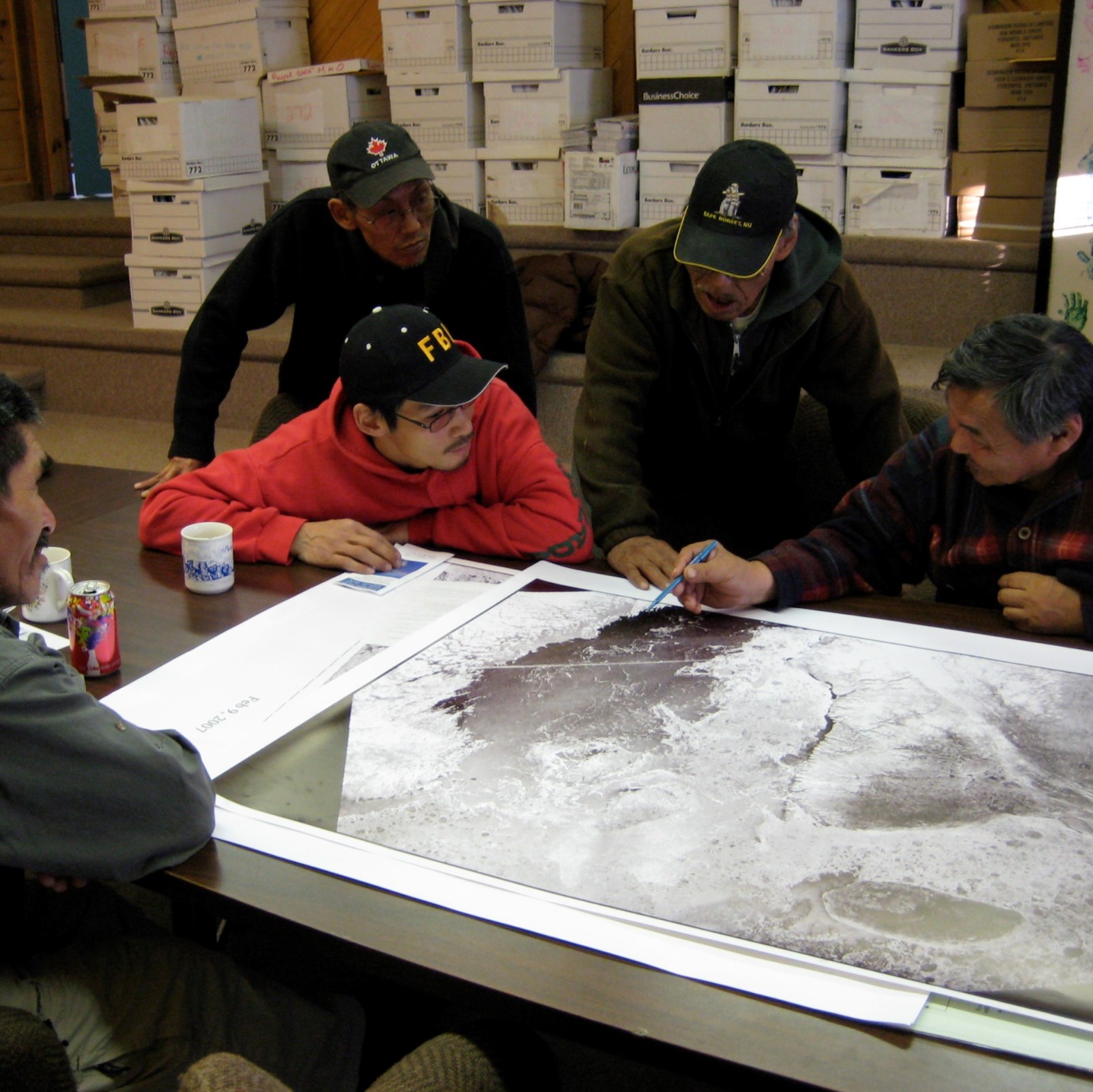 In November 2007 we conducted information sessions and a research workshop in each community to introduce the Floe Edge Service. Through these meetings we were able to gain more understanding and information about northern community priorities in the Qikiqtaaluk (Baffin) region related to weather forecasting and satellite imagery products. The goal of this project is to enhance the user-friendly nature of forecasting products, and to expand Environment Canada’s capacity to deliver region-specific services to improve travel and land/sea ice use and safety for northern community members.