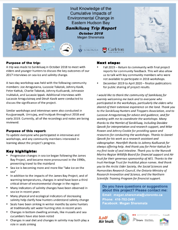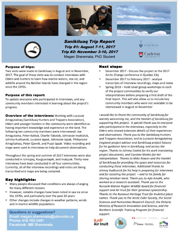 - Mapping Sanikiluarmiut Knowledge for Qikiqtait Protected Area Development
